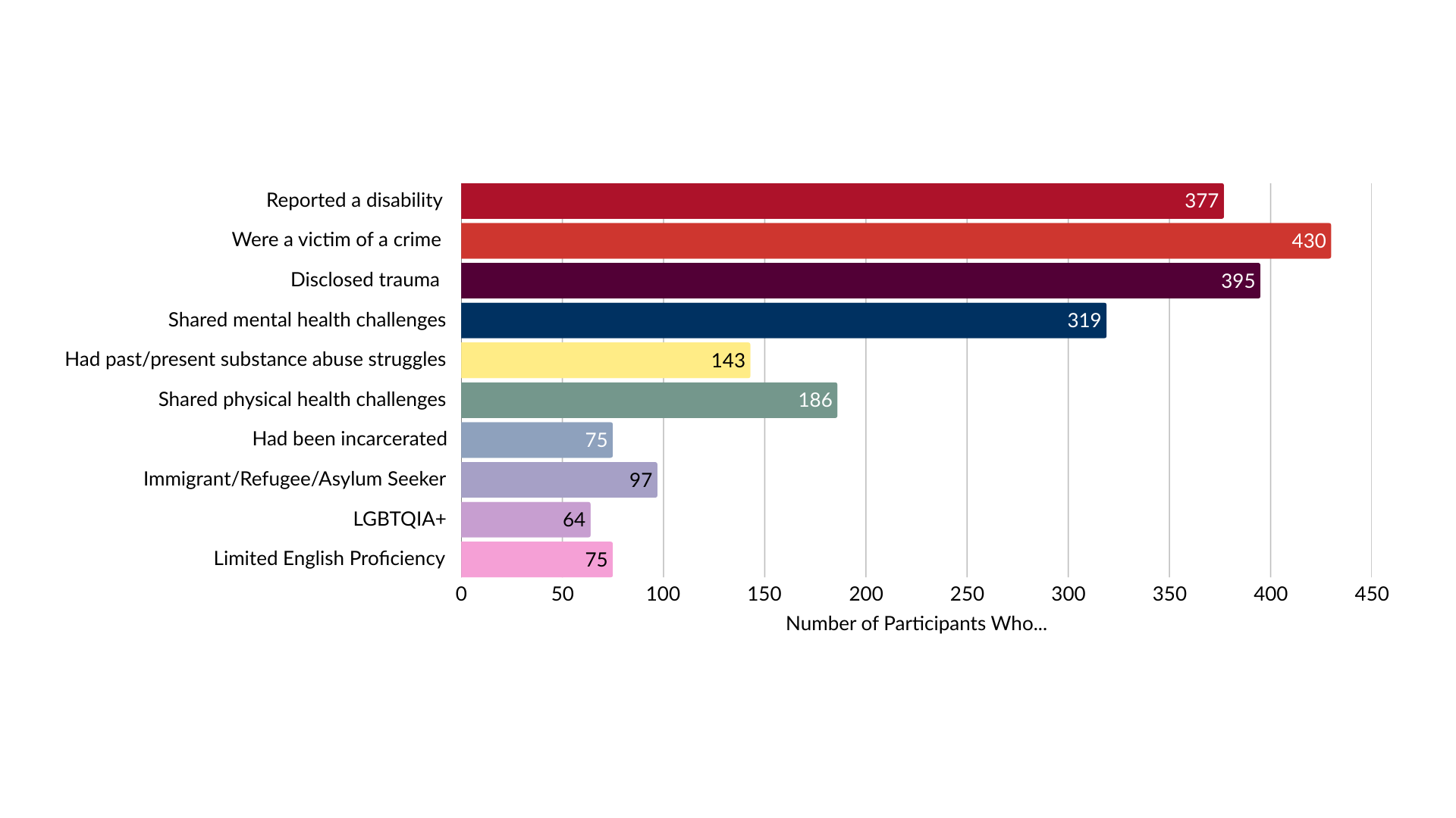 A housed participant was displaced from their apartment due to dangerous conditions in their unit that were impacting their health. Even though the participant had not been in contact with OTR for some time, they knew they could count on us for support. The team helped the participant secure temporary housing and provided food resource support while the participant pursued legal actions against the landlord, also with the support of advocates.